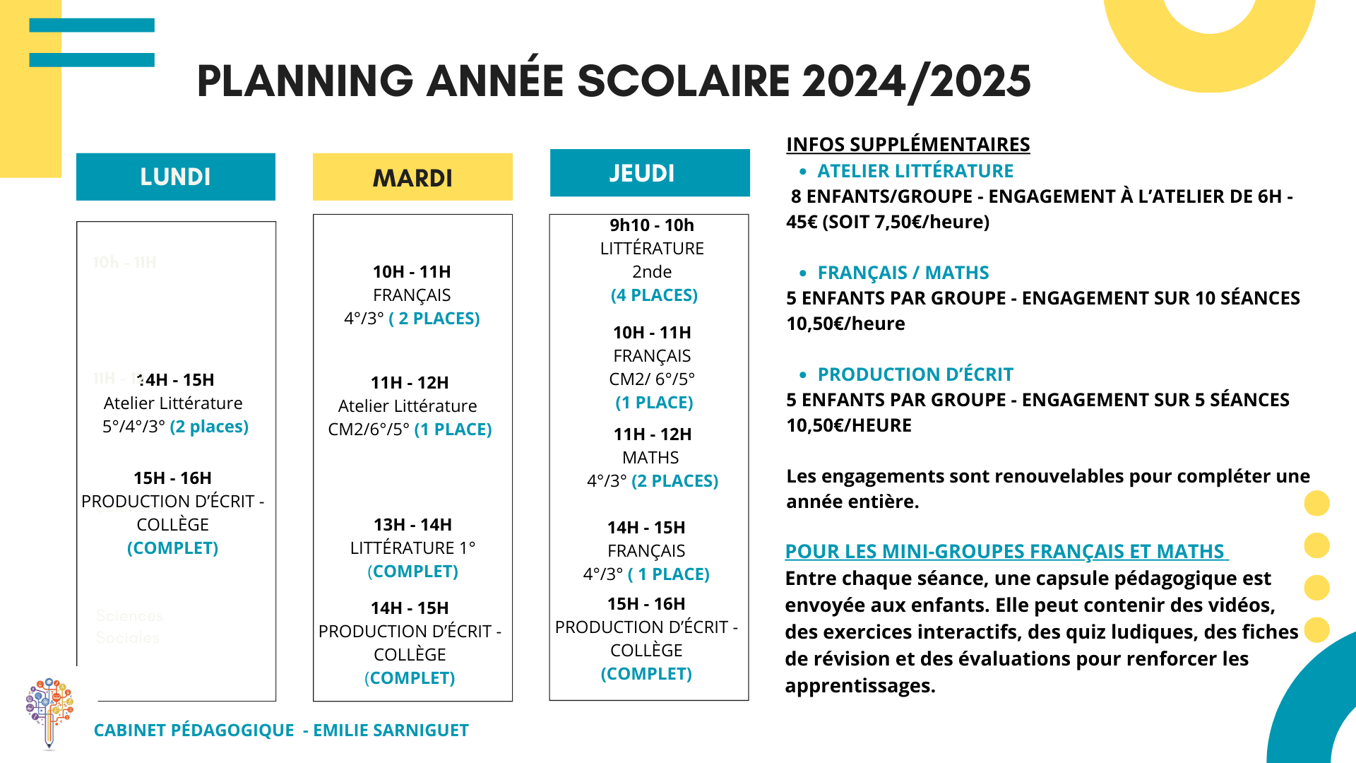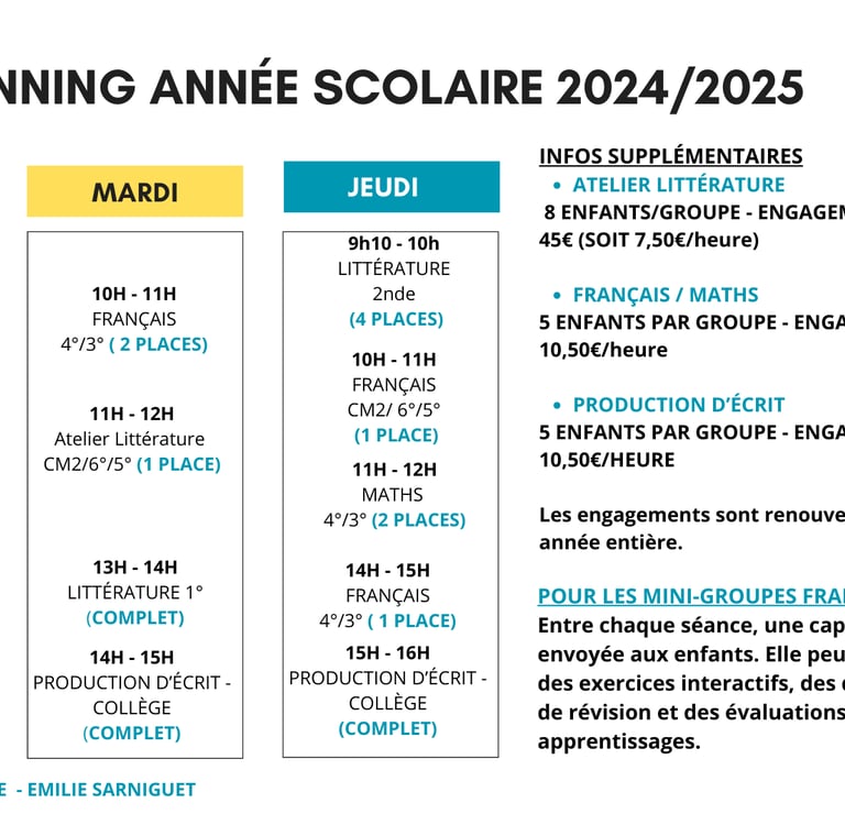 Il reste 2 places dans le groupe Français 2nde le samedi de 10h à 11h.