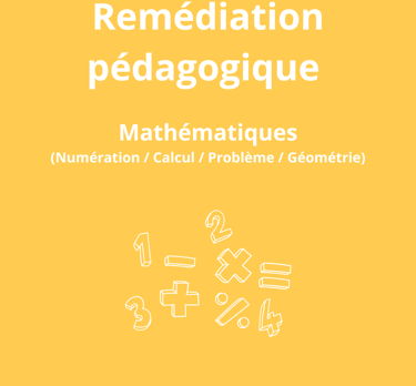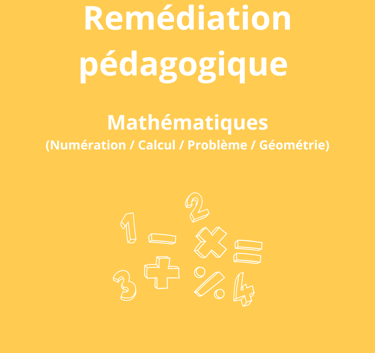 La remédiation pédagogique MATHÉMATIQUES a pour objectif de renforcer les concepts fondamentaux en mathématiques (numération, calcul, géométrie, problème) grâce à des exercices ciblés, s’appuyant sur la manipulation et le jeu pour favoriser la compréhension.