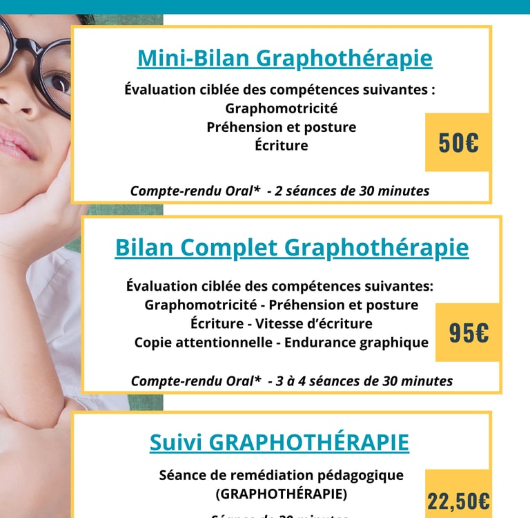 Tout d’abord, nous effectuons un bilan comprenant une anamnèse, une évaluation qualitative de l’écriture, ainsi qu’une analyse de la tenue du stylo, de la posture et du geste graphique.