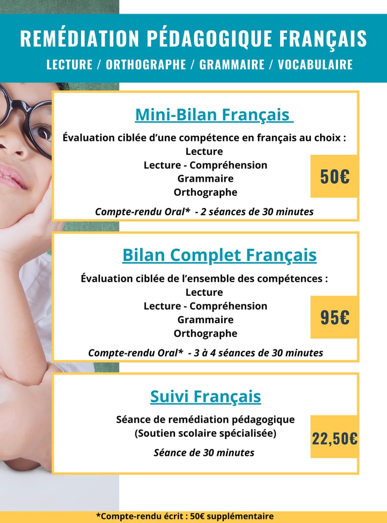 La remédiation pédagogique en lecture s’adresse aux enfants et adolescents rencontrant des difficultés dans ces domaines. Elle a pour objectif de renforcer les compétences en lecture et en enrichissement lexical par le biais d’exercices ciblés et ludiques.